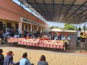 सांसद उम्मेदाराम बेनिवाल‌ द्वारा भामाशाह हेमन्त चौधरी निदेशक आधार क्लासेज एवं सिविल इंजीनियर महेन्द्र रमण का साफा बंधाकर बहुमान किया गया। एवं अपने उद्‌बोधन में कहा कि विद्यार्थी जीवन में शिक्षा ग्रहण कर उच्च पद पर पहुंचे तथा जीवन में हमेशा ऊँचे सपने रखें। छात्रों को डिजिटल शिक्षा की जानकारी देवें तथा सांसद कोटे से विद्यालय को एक स्मार्ट बोर्ड उपलब्ध कराने के साथ-साथ C.S.R. मद से विद्यालय विकास में योगदान करने का विश्वास दिलाया।