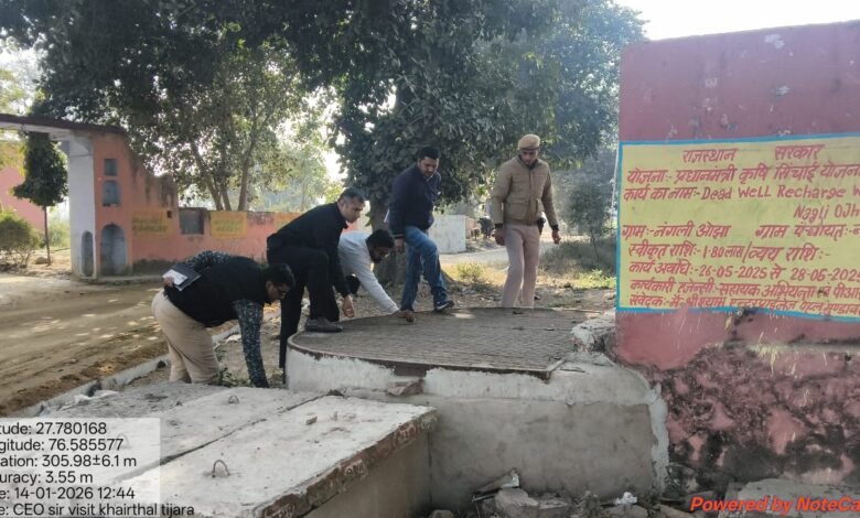 निरीक्षण के दौरान ग्राम नंगली ओझा में किए गए नवाचारात्मक कार्य ‘सूखे कुएं की जल पुनर्भरण संरचना’ का भी अवलोकन किया गया। इस अवसर पर सीईओ ने निर्देश दिए कि जल संरक्षण को बढ़ावा देने के लिए आमजन एवं विभिन्न सरकारी विभागों के आपसी समन्वय से इस प्रकार के अधिकाधिक नवाचारात्मक कार्य किए जाना आवश्यक है, जिससे भूजल स्तर में सुधार हो सके।