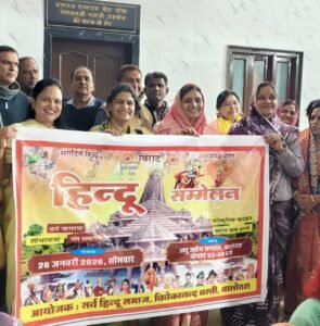 हिंदू सम्मेलन विवेकानंद बस्ती निमित्त सर्व हिंदू समाज की मातृशक्ति द्वारा पोस्टर एवम् आमंत्रण पत्रक का विमोचन किया गया