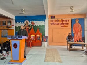 बस्ती (वेदांत टाइम्स/बस्ती टाइम्स 24 न्यूज)। आज भगवान श्रीराम जी के मंदिर की प्राण-प्रतिष्ठा के दो वर्ष पूर्ण होने के पावन अवसर पर सरस्वती विद्या मंदिर, रामबाग बस्ती में विशेष कार्यक्रम का आयोजन किया गया। इस अवसर पर विद्यालय के आचार्य श्री वायुनन्दन मिश्र जी ने प्राण-प्रतिष्ठा के साक्षी होने का उल्लेख करते हुए भगवान श्रीराम के आदर्श जीवन, मर्यादा, त्याग एवं राष्ट्रप्रेम से संबंधित प्रेरक प्रसंग सभी भैयाओं को सुनाए।