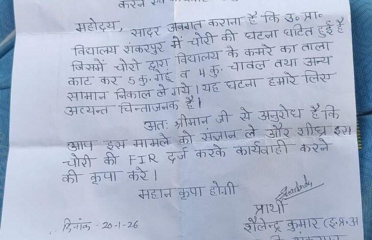 लखीमपुर खीरी: प्राथमिक विद्यालय शंकरपुर में चोरी, 9 कुंटल अनाज सहित अन्य सामान हुआ चोरी
