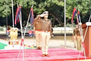 खीरी पुलिस लाइन में गणतंत्र दिवस परेड की फुल ड्रेस रिहर्सल, एसपी संकल्प शर्मा ने किया निरीक्षण