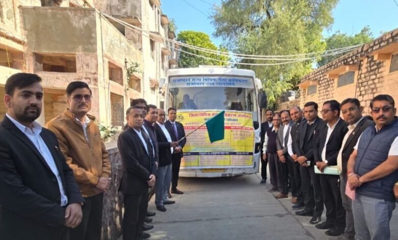 जिला न्यायालय परिसर, बालोतरा से अध्यक्ष जिला विधिक सेवा प्राधिकरण एवं जिला एवं सेशन न्यायाधीश एम. आर. सुथार ने मोबाईल वैन को हरी झंडी दिखाकर रवाना किया। इस अवसर पर सचिव जिला विधिक सेवा प्राधिकरण सिद्धार्थ दीप, अपर जिला एवं सेशन न्यायाधीश नीरज भामू, मुख्य न्यायिक मजिस्ट्रेट नुकेश भगोरा, अति. मुख्य न्यायिक मजिस्ट्रेट डॉ. रामचंद्र चैहान, सहायक प्रशासनिक अधिकारी राजेन्द्र कुमार सहित अन्य न्यायिक अधिकारीगण, बार एसोसिएशन के वरिष्ठ पदाधिकारी, अधिवक्तागण, कर्मचारी एवं पक्षकारगण उपस्थित रहे।