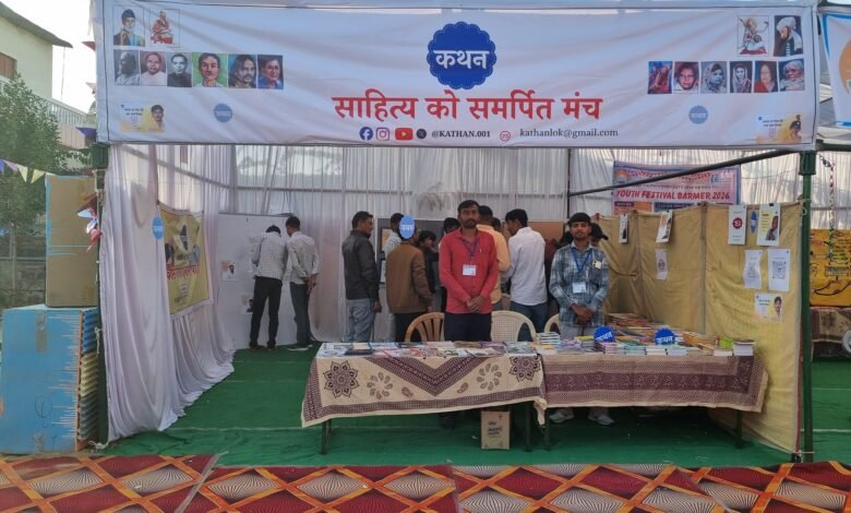 अज़ीम प्रेमजी फाउंडेशन एवं उदय यूथ कम्युनिटी के संयुक्त तत्वावधान में 19 जनवरी से 25 जनवरी तक साहित्य उत्सव का आयोजन किया गया, जिसमें युवाओं ने बढ़-चढ़कर भाग लिया और विभिन्न प्रकार की प्रदर्शनियाँ लगाई गई। इस अवसर पर साहित्य को समर्पित मंच कथन द्वारा भी अपनी प्रदर्शनी लगाई गई और स्थानीय स्तर के साहित्यकारों की पुस्तकों सहित महापुरुषों के विचारों वाले फ्रेम प्रदर्शित किए गए। इसके साथ ही मंच द्वारा एक हजार से भी अधिक लोगों तक कुँवर नारायण की प्रेरणादायी पंक्तियाँ बुकमार्क के माध्यम से पहुंचाई गई। कथन के संरक्षक एवं वरिष्ठ साहित्यकार डॉ. बंशीधर तातेड़ ने बताया कि कथन लगातार ऑनलाइन एवं ऑफलाइन माध्यम से साहित्यिक गतिविधियों का आयोजन करवा रहा है जिसे बाड़मेर के युवा संचालित कर रहे हैं। इसकी स्थापना कवि जेठानंद पंवार एवं उनके सहयोगियों द्वारा की गई है एवं इसका उद्देश्य अधिक से अधिक लोगों को साहित्य से जोड़ना है। इस अवसर पर रावत त्रिभुवनसिंह, डॉ. मुकेश पचौरी, सेवानिवृत्त प्रोफेसर डॉ. पांचाराम चौधरी, सहायक आचार्य डॉ. गणपत सिंह राजपुरोहित, डॉ. आदर्श किशोर जाणी, डॉ. बी. एल. धनदे, पूर्व छात्रसंघ अध्यक्ष रघुवीरसिंह तामलोर, मदन बारूपाल, डॉ. रवींद्र मारू, सेवानिवृत्त प्रधानाध्यापक हरचंदराम पंवार, कवि ओम अंकुर, कवयित्री नीलम जैन, वंदना पंवार, रानी जांगिड़, रविशंकर कोडेचा श्यामलाल कोडेचा, दमाराम लोहिया, कवि महेश पन्नू, चंद्रवीर गर्ग ‘ आबदार ‘ सहित कई साहित्यकारों ने प्रदर्शनी का अवलोकन किया और कथन को एक सराहनीय पहल बताया। प्रदर्शनी के समापन पर डॉ. बंशीधर तातेड़ एवं संस्थापक जेठानंद पंवार ने प्रत्यक्ष एवं अप्रत्यक्ष रूप से सहयोग करने वाले तमाम सहयोगियों को प्रशस्ति-पत्र देकर आभार व्यक्त किया।