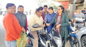 बस्ती (वेदांत टाइम्स/बस्ती टाइम्स 24)। शहर में सड़क सुरक्षा को लेकर एचबीएल एसोशिएसन् एवं परिवहन विभाग द्वारा गुरूवार को जागरूकता अभियान चलाया गया। अभियान के दौरान बिना हेलमेट और सीट बेल्ट लगाए वाहन चला रहे लोगों को रोककर उन्हें गुलाब का फूल भेंट किया गया और प्रेमपूर्वक समझाया गया कि वे अपनी और दूसरों की सुरक्षा के लिए हेलमेट व सीट बेल्ट का उपयोग अवश्य करें।