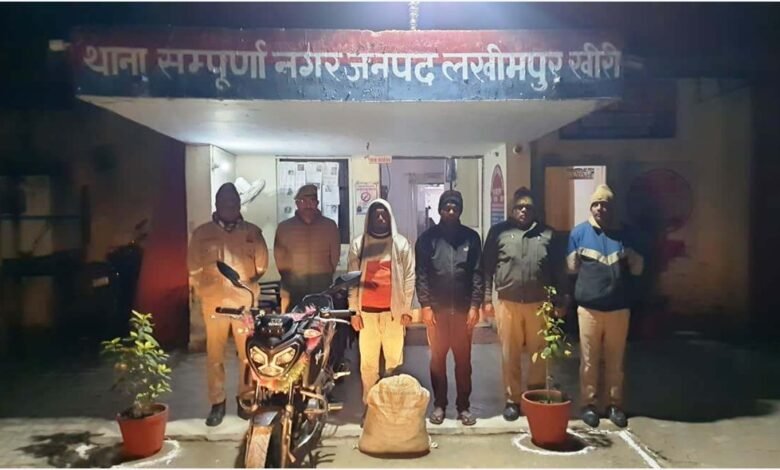 पुलिस अधीक्षक खीरी श्री संकल्प शर्मा के निर्देश पर, अपर पुलिस अधीक्षक खीरी के निकट पर्यवेक्षण एवं क्षेत्राधिकारी पलिया के कुशल मार्गदर्शन में यह कार्रवाई की गई। थानाध्यक्ष सम्पूर्णानगर के नेतृत्व में पुलिस टीम ने दिनांक 31.01.2026 को कार्रवाई करते हुए एक प्लास्टिक बोरी से 500 एमएल के 60 पाउच (कुल 30 लीटर) अवैध कच्ची शराब बरामद की। साथ ही शराब ढोने में प्रयुक्त टीवीएस राइडर मोटरसाइकिल (UP31 CQ 2571) भी जब्त की गई।