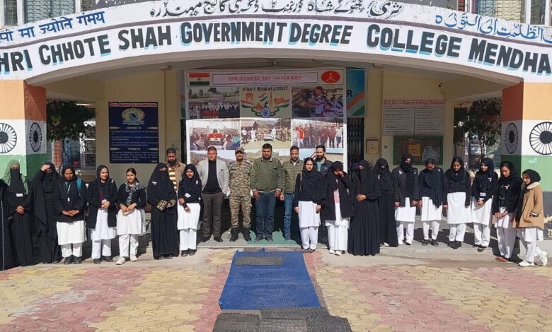 विश्व कैंसर दिवस के अवसर पर जनस्वास्थ्य के प्रति जागरूकता बढ़ाने और सिविल–मिलिट्री सहयोग को सशक्त करने के उद्देश्य से राजकीय डिग्री कॉलेज, मेंढर में एक व्यापक कैंसर जागरूकता कार्यक्रम का आयोजन किया गया। यह कार्यक्रम 04 फरवरी 2026 को रामकुंड गनर्स द्वारा ऐस ऑफ स्पेड्स गनर्स की ओर से आयोजित किया गया, जिसका वैश्विक विषय “यूनाइटेड बाय यूनिक” रहा।