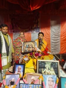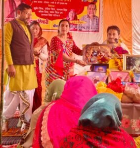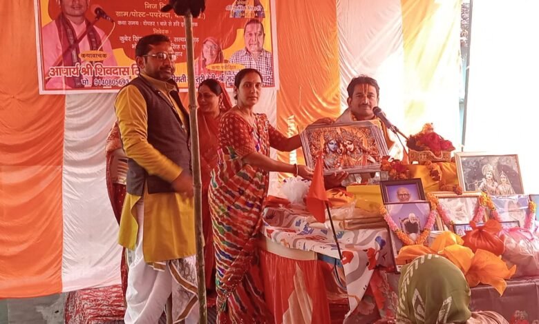 बांदा | जनपद बांदा की ग्राम पंचायत पपरेन्दा में आयोजित श्रीमद् भागवत सप्ताह ज्ञान यज्ञ बड़े ही श्रद्धा और भक्ति भाव के साथ संपन्न हो रहा है। इस पावन अवसर पर गौ रक्षा दल (भारत) की राष्ट्रीय प्रबंधक ठाकुर रेनू सेंगर ने विशेष रूप से पहुंचकर व्यास पीठ का पूजन किया।