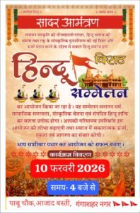 आयोजकों ने समस्त धर्मप्रेमी जनता से अपील की है कि अधिक से अधिक संख्या में पहुंचकर इस विराट हिंदू सम्मेलन को सफल बनाएं।