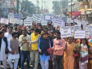 At the behest of a Congress MLA, a writ petition was filed in the High Court against the repeated obstruction of municipal elections in Kichha and Sirauli Kala. Thousands of Kichha and Sirauli Kala residents, led by former MLA Rajesh Shukla, protested against the Congress party, holding placards in their hands.