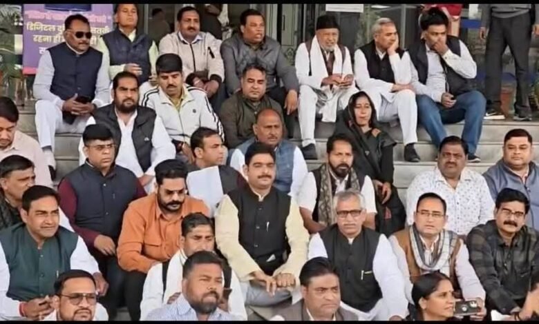 भिवाड़ी अग्निकांड को लेकर कांग्रेस का जोरदार प्रदर्शन, मिनी सचिवालय पर दिया धरना।