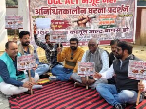 यूजीसी के नये नियमों को वापस लिये जाने की मांग को लेकर मेधा पार्टी का धरना जारी