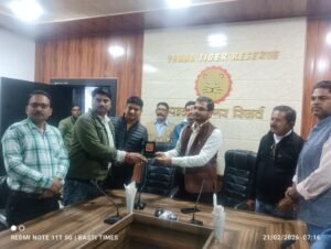 हर वर्ष पन्ना नेशनल पार्क एवं टाइगर रिजर्व द्वारा नेचर कैंप का आयोजन 1.11.25 से 28.2.26 तक पन्ना के नेचर कैंप को जानने के उद्देश्य कार्यक्रमों का आयोजन किया गया जिसमें नवंबर से फरवरी तक इन कार्यक्रमों का आयोजन होता है जिसमें बच्चे, समाज सेवी,पत्रकार यह सभी लोग शासन के निर्देश अनुसार नेशनल पार्क की गाड़ियों में गाइडो के साथ पन्ना नेशनल पार्क का भ्रमण करते हैं और पन्ना नेशनल पार्क के बारे में जानकारी प्राप्त करते हैं इसीक्रम में पत्रकार एकता मंच के 25 पत्रकारों ने 21,02,2026 को टाइगर रिजर्व ऑफिस पहुंचे जहां dfo अनुपम शर्मा द्वारा सभी पत्रकारो का अभिवादन किया इसके बाद पत्रकार एकता मंच के अध्यक्ष शिव किशोर को टाइगर रिजर्व क्षेत्र की जानकारी बुक और मोमेंटो भेंट की और जंगल की जानकारी दी इसका क्षेत्रफ़ल कितना है यहां कौन,कौन से औषधि पौधे पाए जाते हैं और कौन ,कौन से जानवर हैं विशेष कर टाइगर के बारे में जानकारी दी गई।इसके बाद दो गाइडों भवानी पटेल,मनीष रावत जी के साथ जंगल की और गए जहां गाइडों के कुशल नेतृत्व में जंगल के पौधों की जानकारी दी इसके पश्चात सभी पत्रकार हिनौता गेट पर पहुंचे जहां से टाइगर रिजर्व की शुरुआत होती हैं।यही पर रेंजर राजेंद्र अरजरिया द्वारा सभी पत्रकारो से परिचय किया साथ ही ने जंगल की वाइल्ड लाइफ के बारे में जानकारी दी जिसमें बाघ,तेंदुआ,हिरण,जंगली सुअर, लकड़ बग्घा,नील गाय,बारह सिंघा,मगर,भालू,और हाथी जैसे जानवरों की जानकारी दी और दिखाया गया।साथ ही साथ मानव जीवन में जंगल वन्य जीव की क्या उपयोगिता हैं इसकी जानकारी प्राप्त हुई।