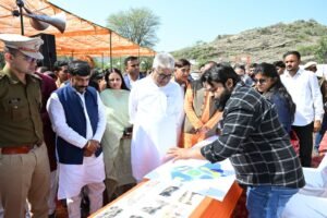 केंद्रीय मंत्री ने अरावली पर्वतमाला के संरक्षण पर विशेष जोर देते हुए कहा कि अवैध खनन को रोकना अत्यंत आवश्यक है और यह धरती माता की सबसे बड़ी सेवा है। उन्होंने वन विभाग के अधिकारियों को निर्देश दिए कि क्षेत्र में स्थानीय प्रजातियों के पौधों का अधिक से अधिक रोपण किया जाए तथा कुछ क्षेत्रों को संरक्षित कर प्राकृतिक रूप से हरित क्षेत्र विकसित किया जाए, जिससे पर्यावरण संतुलन बना रहे और पशुओं के लिए भी प्राकृतिक संसाधन उपलब्ध हो सकें।