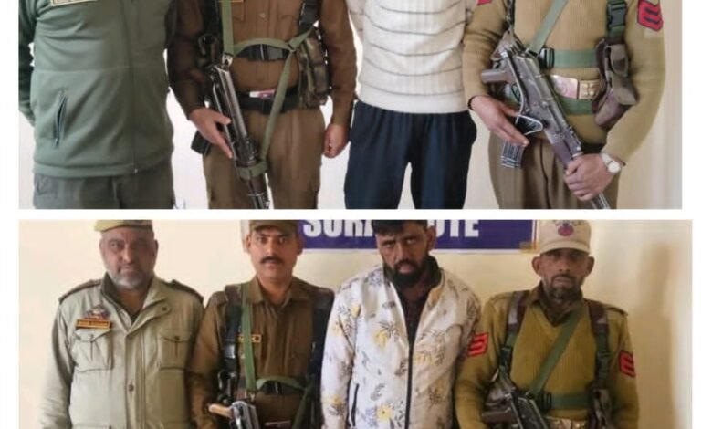 सुरनकोट में दो ड्रग तस्कर गिरफ्तार, 18 ग्राम हेरोइन बरामद