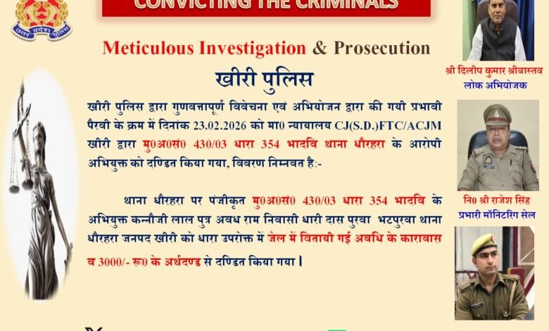 ऑपरेशन कन्विक्शन के तहत 23 साल पुराने छेड़छाड़ केस में आरोपी को सजा, खीरी कोर्ट का फैसला