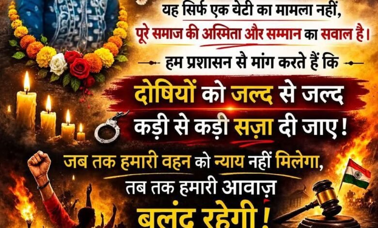 धरने में शामिल लोगों ने कहा कि यह लड़ाई सिर्फ एक परिवार की नहीं, बल्कि पूरे समाज की है। बेटियों की सुरक्षा और सम्मान के लिए समाज एकजुट है और न्याय मिलने तक आवाज़ उठाता रहेगा।
