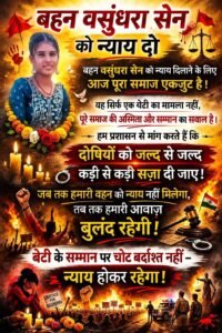 धरने में शामिल लोगों ने कहा कि यह लड़ाई सिर्फ एक परिवार की नहीं, बल्कि पूरे समाज की है। बेटियों की सुरक्षा और सम्मान के लिए समाज एकजुट है और न्याय मिलने तक आवाज़ उठाता रहेगा।