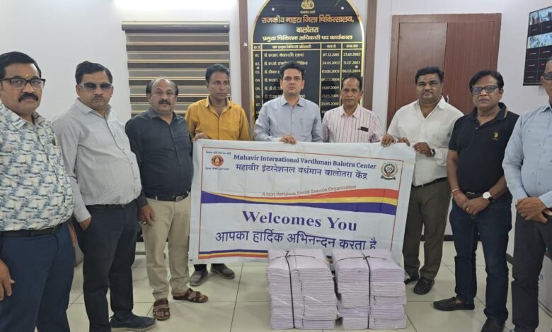 बालोतरा, राजस्थान। सामाजिक सेवा के क्षेत्र में एक सराहनीय पहल करते हुए महावीर इंटरनेशनल वर्धमान केंद्र द्वारा आज राजकीय जिला नाहटा अस्पताल परिसर में पीएमओ डॉ. संदीप कुमार देवत को 555 शव वस्त्र (कफ़न) भेंट किए गए। इस सेवा कार्य की अस्पताल प्रशासन और स्थानीय लोगों ने सराहना की।