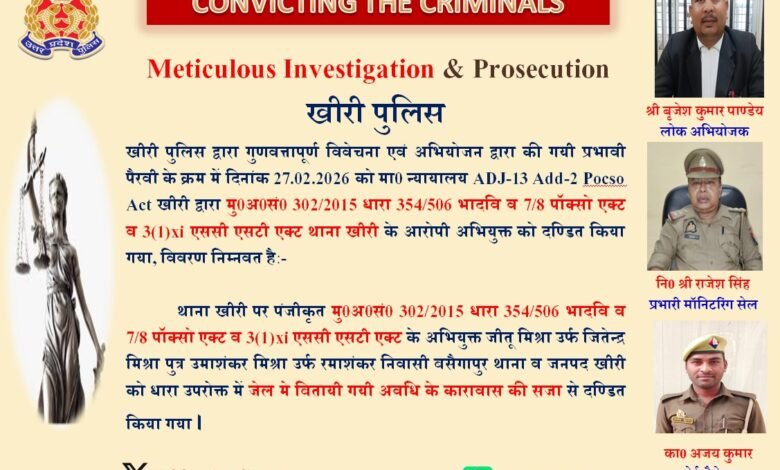 उत्तर प्रदेश शासन की मंशा के अनुरूप उत्तर प्रदेश पुलिस द्वारा चलाए जा रहे ऑपरेशन कन्विक्शन अभियान के तहत जनपद लखीमपुर खीरी पुलिस को बड़ी सफलता मिली है। वर्ष 2015 के एक गंभीर मामले में न्यायालय ने आरोपी को दोषी करार देते हुए सजा सुनाई है।