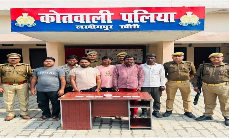 पुलिस अधीक्षक खीरी, डा0 ख्याति गर्ग द्वारा जनपद खीरी में अपराध एवं अपराधियों के विरुद्ध चलाये जा रहे अभियान के अंतर्गत अपर पुलिस अधीक्षक खीरी के निकट पर्यवेक्षण में व अपर पुलिस अधीक्षक के कुशल निर्देशन में व क्षेत्राधिकारी पलिया के कुशल मार्गदर्शन एवं थानाध्यक्ष पलिया के नेतृत्व में आज दिनांक 07.03.2026 को थाना पलिया पुलिस द्वारा, सार्वजनिक स्थान पर जुआँ खेलते हुये 06 नफर अभियुक्तों 1.जीशान पुत्र यामीन निवासी मो0 नई बस्ती इकरामनगर कस्बा व थाना पलिया जनपद खीरी 2.नईम पुत्र मो0 हनीफ निवासी मो0 इकरामनगर कस्बा व थाना पलिया जनपद खीरी 3.युसुफ पुत्र मो0 उमर निवासी मो0 माहीगिरान प्रथम (गड़रिया मोहल्ला) कस्बा व थाना पलिया जनपद खीरी 4. वाहिद पुत्र बफाती निवासी मो0 माहीगिरान द्वितीय कस्बा व थाना पलिया जनपद खीरी 5.मुस्तकीम पुत्र ताहिर निवासी मो0 माहीगिरान प्रथम कस्बा व थाना पलिया जनपद खीरी 6.सोनू खान पुत्र कल्बे खान निवासी मो0 माहीगिरान प्रथम कस्बा व थाना पलिया जनपद खीरी को 52 अदद ताश के पत्ते व कुल 29670/- रूपये सहित गिरफ्तार किया गया। गिरफ्तारी व बरामदगी के संबंध में थाना मझगई पर मु0अ0सं0 59/2026 अन्तर्गत धारा 13 जुआ अधिनियम पंजीकृत किया गया। अग्रिम विधिक कार्यवाही की जा रही है।