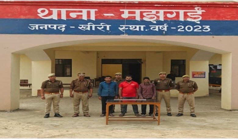 पुलिस अधीक्षक खीरी, डा0 ख्याति गर्ग द्वारा जनपद खीरी में अपराध एवं अपराधियों के विरुद्ध चलाये जा रहे अभियान के अंतर्गत अपर पुलिस अधीक्षकखीरी के निकट पर्यवेक्षण में व क्षेत्राधिकारी पलिया के कुशल मार्गदर्शन एवं प्रभारी निरीक्षक मझगई के नेतृत्व में आज दिनांक 09.03.2026 को थाना मझगई पुलिस द्वारा, मु0अ0सं0 57/2026 धारा 103(1) बीएनएस में वांछित 03 नफर अभियुक्तों 1.सोनू राठौर पुत्र स्व0 श्याम किशोर राठौर नि0 मो0 अहरान प्रथम निकट छोटी पलिया थाना पलिया जिला खीरी 2.प्रेमसागर पुत्र नन्दलाल नि0ग्राम लोकनपुरवा थाना मझगई जिला खीरी 3.राजकिशोर पुत्र शारदा प्रसाद नि0ग्राम कोठिया थाना मझगई जिला खीरी को आलाकत्ल 01 अदद लोहे की मोटी पत्ती सहित गिरफ्तार किया गया । गिरफ्तार अभियुक्तों को विधिक कार्यवाही पूर्ण कर माननीय न्यायालय भेजा गया।