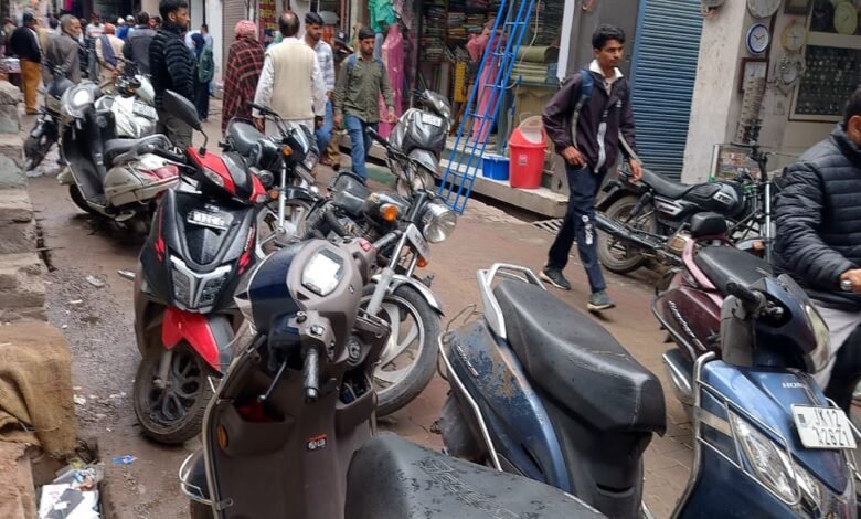 बाजार में दुकानदारों और ग्राहकों द्वारा मोटरसाइकिल और स्कूटर सड़क के बीचों-बीच खड़े कर दिए जाते हैं, जिससे पैदल चलने वालों के लिए रास्ता लगभग बंद हो जाता है।