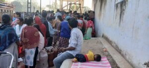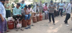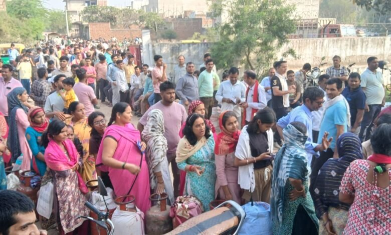 प्रशासन के दावों के बीच गैस के लिए जद्दोजहद, 6 माह के बच्चे को तख्त पर सुलाकर घंटों लाइन में खड़ी रही महिला