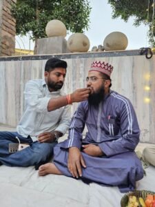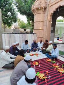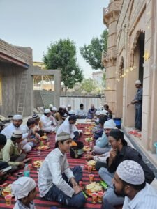 जसोल – रमजान मास के 23वें रोज़े व (4)थे शुक्रवार (जुमे ) को समाज सेवी व युवा नेता थानसिंह डोली ने जसोल शाही मस्जिद शाम 6.51बजे पहुंच कर पेश इमाम मोल्लाना शौकत अली “अकबरी” खोखा को पिन्न खजूर खिलाकर रोज़ा इफ़्तीयारी करवाई। साथ ही सभी रोज़ादारों को भी पिंन्न खजूर के साथ ही फल फ्रूट्स व नींबू की शिकंजी पिलाकर सद्भावना का संदेश दिया।मगरब की नमाज़ में सभी मुस्लिम भाइयों ने अमन चैन व वतन के हिफाज़त की दुआ खुदा पाक से की। युवा नेता थानसिंह डोली ने भाईचारे की बात करते हुए मोल्लाना साहब जनाब शौकतअली “अकबरी” को चुनडी साफा पहिना कर उनका इस्तक़बाल किया। प्रथम बार मस्जिद पधारने पर मोल्लाना साहब ने थानसिंह डोली को साफा व अन्य मुस्लिम भाइयों ने माला पहनाकर इस्तक़बाल किया। कार्यक्रम में विशेष रूप से पधारे नरेश भाई माली (प्रबंधक श्री लक्ष्मी गार्डन होटल जसोल फांटा ) का भी जनाब पिरू खान मोयला ने पहली बार मस्जिद आने पर साफा पहनाकर स्वागत किया। थानसिंह डोली ने रमजान मास की मुबारकबाद देते हुए जनाब पिरू खान व सिकंदर भाई को भी साफा पहनाकर स्वागत किया। इस अवसर पर जनाब गुलाम नबी, दाऊद खान, अबास भाई, फ़िरोज़ खान, अरबाज़, इरफ़ान, शौकत खान, मोहम्मद खान सहित अन्य रोज़ादार उपस्थित रहे। रूद्रप्रतापसिंह भी थानसिंह के साथ पधारे उनका भी इस्तक़बाल किया गया। थानसिंह डोली ने मस्जिद में हुए नये विकास व विस्तार कार्यों की प्रशंसा की।