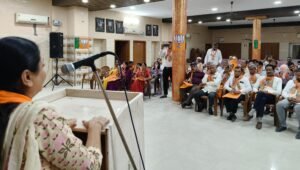 प्रथम वक्ता के रूप में भाजपा जिलाध्यक्ष सुमन जी छाजेड ने “इतिहास एवं विकास” विषय पर उद्बोधन देते हुए संगठन के इतिहास तथा विकास की दिशा में किए गए कार्यों पर प्रकाश डाला।