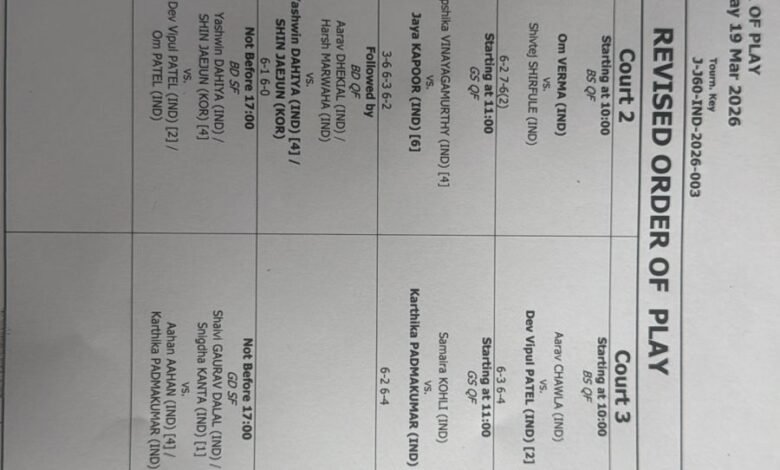 देहरादून…आज (दिनांक19-03-2026) प्रतियोगिता के पांचवे दिन शांति टेनिस एकेडेमी मे प्रत: 9 बजे से निम्नानुसार मैच खेले गए।