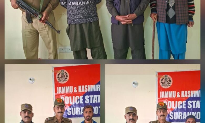 पुंछ पुलिस की बड़ी कार्रवाई: सुरनकोट थाना क्षेत्र में 5 फरार आरोपी गिरफ्तार