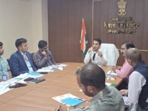 खैरथल-तिजारा, 25 मार्च। जिला खैरथल-तिजारा की वर्ष 2025-2026 की अंतिम तिमाही की डीसीसी/डीएलआरसी (DCC/DLRC) बैठक का आयोजन जिला कलेक्ट्रेट सभागार, खैरथल में अतिरिक्त जिला कलेक्टर शिवपाल जाट की अध्यक्षता में किया गया।