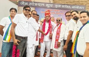 महावीर इंटरनेशनल बालोतरा के संरक्षक पारसमल भंडारी, चेयरमैन जवाहरलाल हुडिया, सचिव अशोक व्यास, जवेरीलाल मेहता, दलपत जैन, महावीर बोकडिया, गौतम दांती और हीरालाल प्रजापति सहित सदस्यों ने श्री ओसवाल समाज के अध्यक्ष शांतिलाल डागा एवं जैन नवयुवक मंडल के अध्यक्ष पवन कुमार का साफा पहनाकर एवं माल्यार्पण कर सम्मान किया।