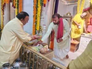 ने गुरुवार को जयपुर प्रवास के दौरान बालाजी भगवान को तेल सिंदूर व प्रसादी का भोग लगाकर देश मे अमन चैन व खुशहाली की कामना की।इस दौरान उन्होंने भगवान से प्रार्थना करते हुए प्रदेश व देशवासियों के सुख, समृद्धि और निरोगी जीवन की कामना की।इस दौरान उन्होंने ने उपस्थित साधु संतों के दर्शन कर आशीर्वाद लिया।
