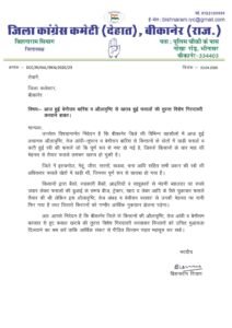 देहात अध्यक्ष बिशनाराम सियाग ने कहा कि बीकानेर जिले में हुई अचानक ओलावृष्टि, तेज आंधी-तूफान ने किसानों की कमर तोड़ दी है। किसानों की महीनों की मेहनत से तैयार रबी फसलें पूरी तरह नष्ट हो गई हैं, जिससे वे गहरे आर्थिक संकट में आ गए हैं। हम प्रशासन से मांग करते हैं कि प्रभावित क्षेत्रों में तुरंत विशेष गिरदावरी करवाई जाए तथा बिना देरी किए किसानों को उचित मुआवजा दिया जाए। साथ ही, किसानों के ऋणों में राहत प्रदान कर उन्हें इस संकट से उबारने के लिए ठोस कदम उठाए जाएं।