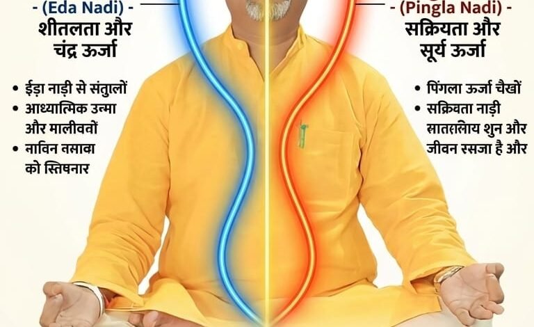 उन्होंने जानकारी दी कि शरीर में मुख्य रूप से तीन प्रमुख नाड़ियाँ होती हैं—ईड़ा, पिंगला और सुषुम्ना। ईड़ा नाड़ी शरीर के बाईं ओर स्थित होती है और इसे शीतलता तथा चंद्र ऊर्जा का प्रतीक माना जाता है। यह मन और भावनाओं को संतुलित करने में सहायक होती है। वहीं पिंगला नाड़ी शरीर के दाईं ओर स्थित होती है, जो सूर्य ऊर्जा और सक्रियता का प्रतिनिधित्व करती है तथा शारीरिक ऊर्जा और कार्यक्षमता को नियंत्रित करती है।