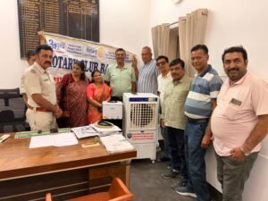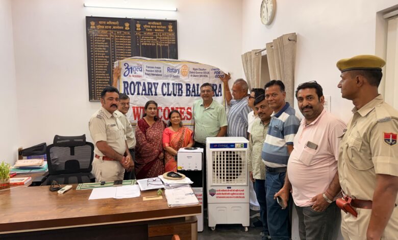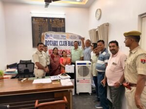 बालोतरा। बढ़ती गर्मी और तेज़ लू के बीच आमजन एवं पुलिसकर्मियों को राहत पहुंचाने के उद्देश्य से रोटरी क्लब बालोतरा द्वारा पुलिस थाना बालोतरा में एक वाटर कूलर एवं वाटर डिस्पेंसर भेंट किया गया। इस सेवा कार्य से थाना परिसर में आने वाले नागरिकों एवं ड्यूटी पर तैनात पुलिस कर्मियों को शीतल जल की सुविधा उपलब्ध हो सकेगी।