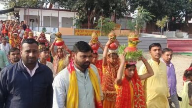 भागवत कथा का समापन एवं कलश यात्रा,भक्ति और आस्था का संगम….आचार्य राजवीर शास्त्री,धूमधाम से निकाली गई कलश यात्रा