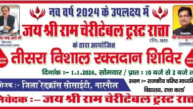 ब्यूरो चीफ सतीश कुमार महेंद्रगढ़ हरियाणा अटेली मंडी 29/12/2023 राता में तीसरा विशाल रक्त दान शिविर नव वर्ष…