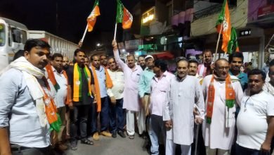 भारत के यशस्वी प्रधानमंत्री नरेंद्र मोदी द्वारा तीसरी बार प्रधानमंत्री की शपथ के अवसर पर भाजपाइयों ने निकाला जुलूस एवं बाटी मिठाइयां