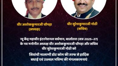 ब्यूरो चीफ सन्तोष कुमार गर्ग बालोतरा, 25 सितम्बर। नवरात्रि के पावन अवसर पर आज महावीर इंटरनेशनल वर्धमान केंद्र, बालोतरा…