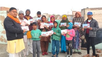 विश्व हिंदू परिषद एवं बजरंग दल द्वारा अयोध्या से आए अक्षत गांव गांव वितरित किए गए